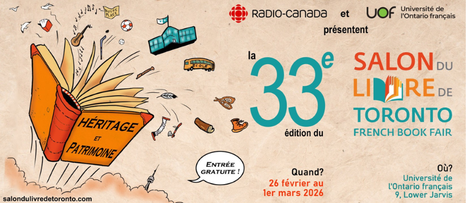 Le Salon du livre de Toronto est heureux de dévoiler officiellement sa 33ᵉ édition, qui se tiendra du 26 février au 1er mars 2026 à l’Université de l’Ontario français (9, rue Lower Jarvis Ce lien s'ouvrira dans une nouvelle fenêtre).